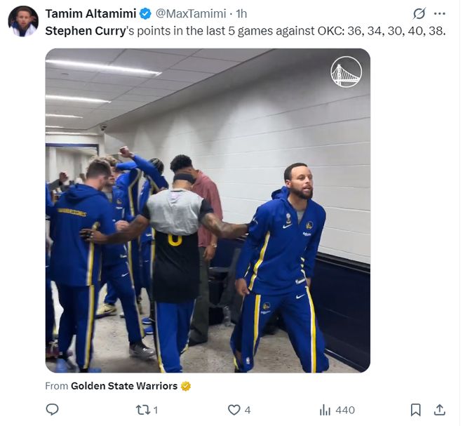 賽前勇士媒體寫道,庫里最近五次打雷霆:36分、34分、30分、40分、38分,也就是五連30+,但此役后這個紀錄就中斷了。