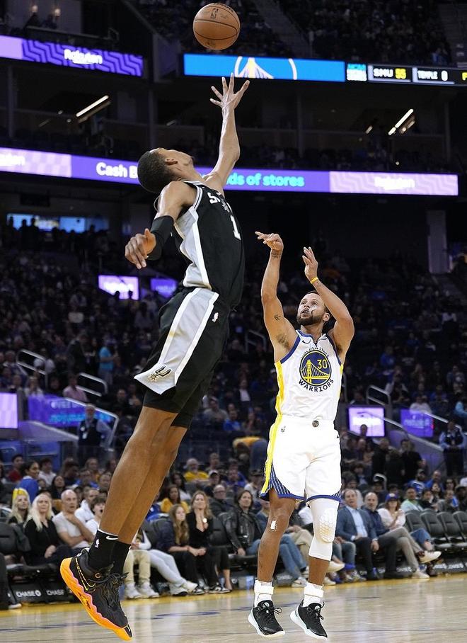 回到比賽庫里前一次出手改成了3分勇士加一分,卡斯爾三分命中,科內特防守吃到犯規勇士繼續進攻庫里三分不中,卡斯爾超遠三分也沒有,希爾德三分依舊鐵這段時間籃筐都被打歪了。瓦塞爾三分不中卡斯爾飛身補中比分來到19-11,4分57秒科爾喊出暫停!比賽繼續庫里突分霍福德三分命中,卡斯爾還是點庫里中距離拔中,希爾德亂打被帽卡斯爾反擊上籃再中分差9分了,庫明加、庫里三分連續鐵三分手感太差了。波杰姆斯基兜出來三分還是不中,2分39秒巴特勒換下庫里,文班亞馬重新回到場上馬刺擺出雙塔,庫明加去防文班亞馬后者中距離打鐵,霍福德三分還是不中,凱爾登溜底線反籃上中25-14馬刺領先來到11分,文班分球尚帕尼三分有了,巴特勒三分不中??怂棺詈笠还ヒ矝]打成,首節戰罷勇士14-28落后14分之多,外線手感太差了首節狂丟18三分僅僅只命中4球!